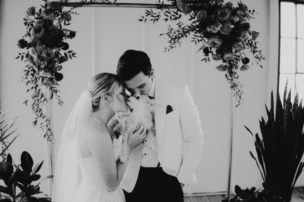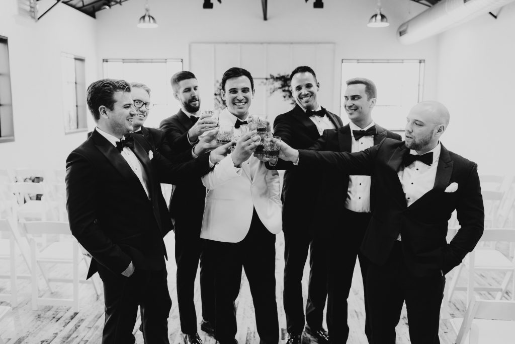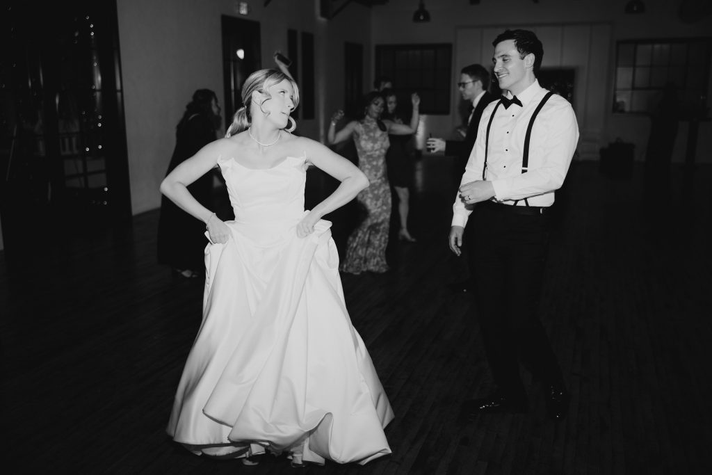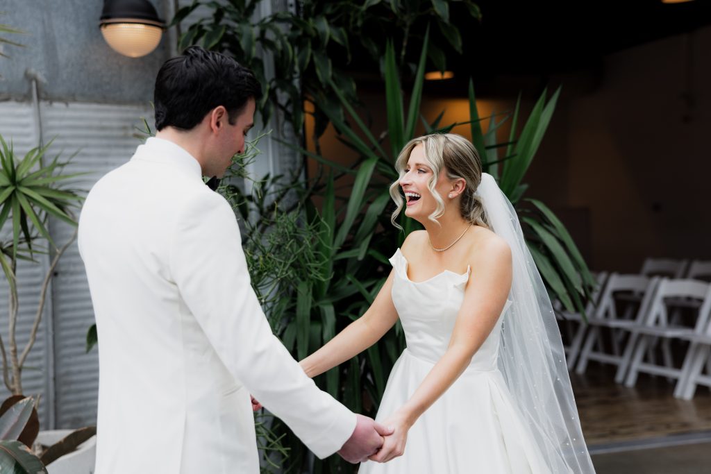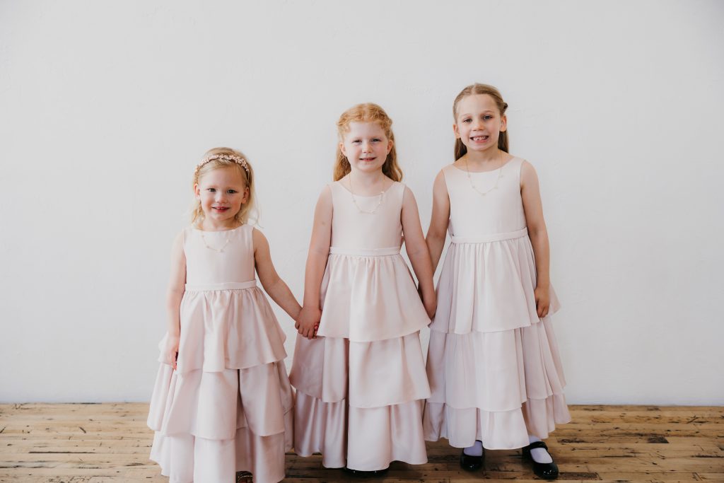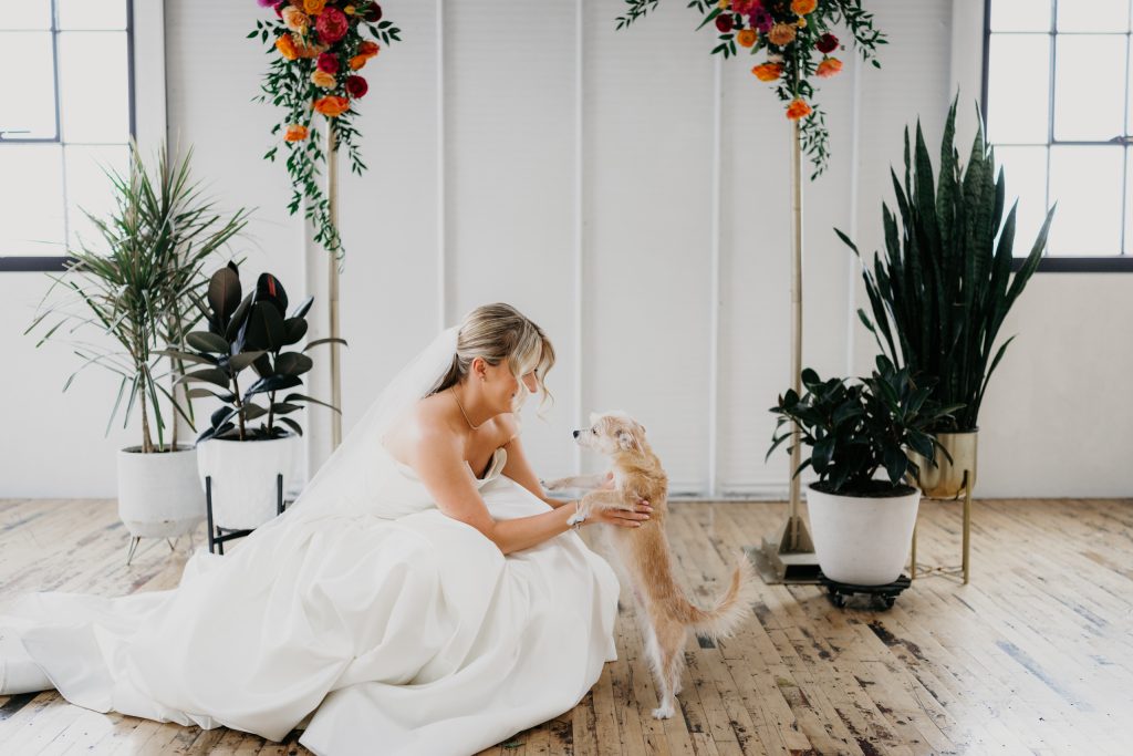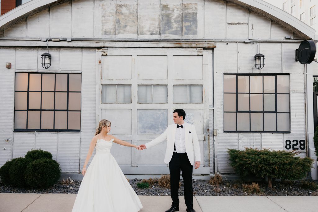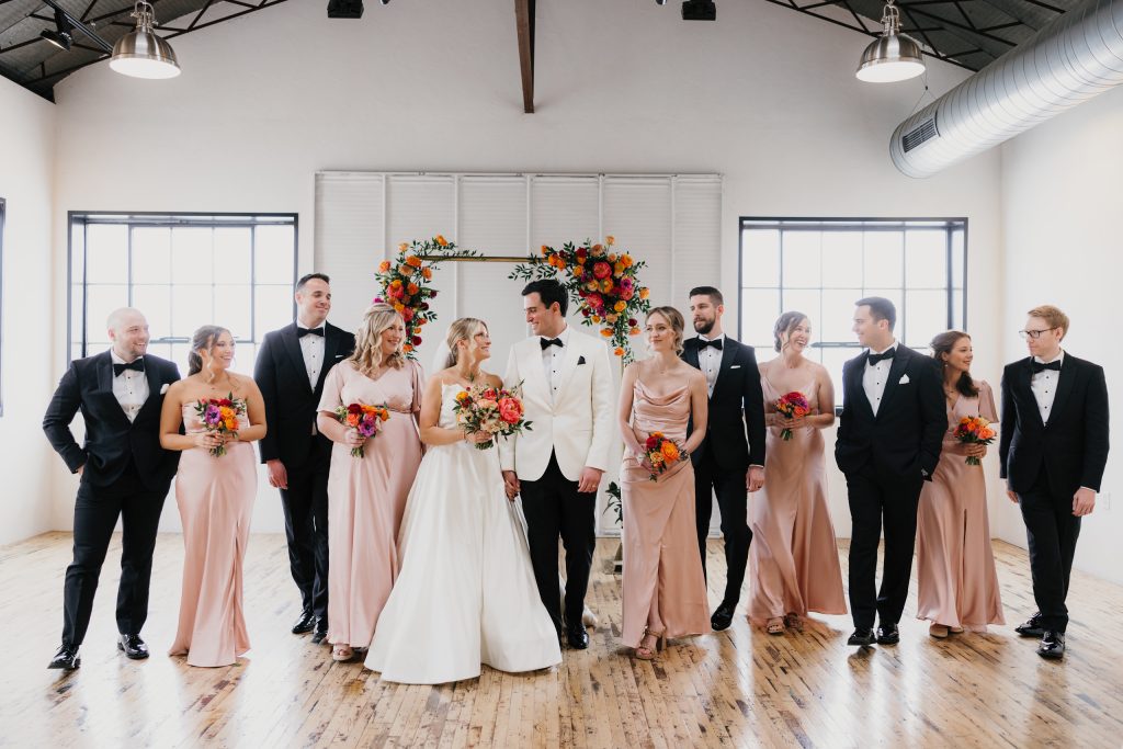 These two had perfect colors for a spring wedding and The Tinsmith was the perfect setting. The groom looked so sharp in his white tux and the neutral tones on the bridal party were complimented by bright and bold florals. Their three flower girls played the part to perfection and their adorable pup got to join for some pre-ceremony photos. The day was so special and filled with smiles and class.