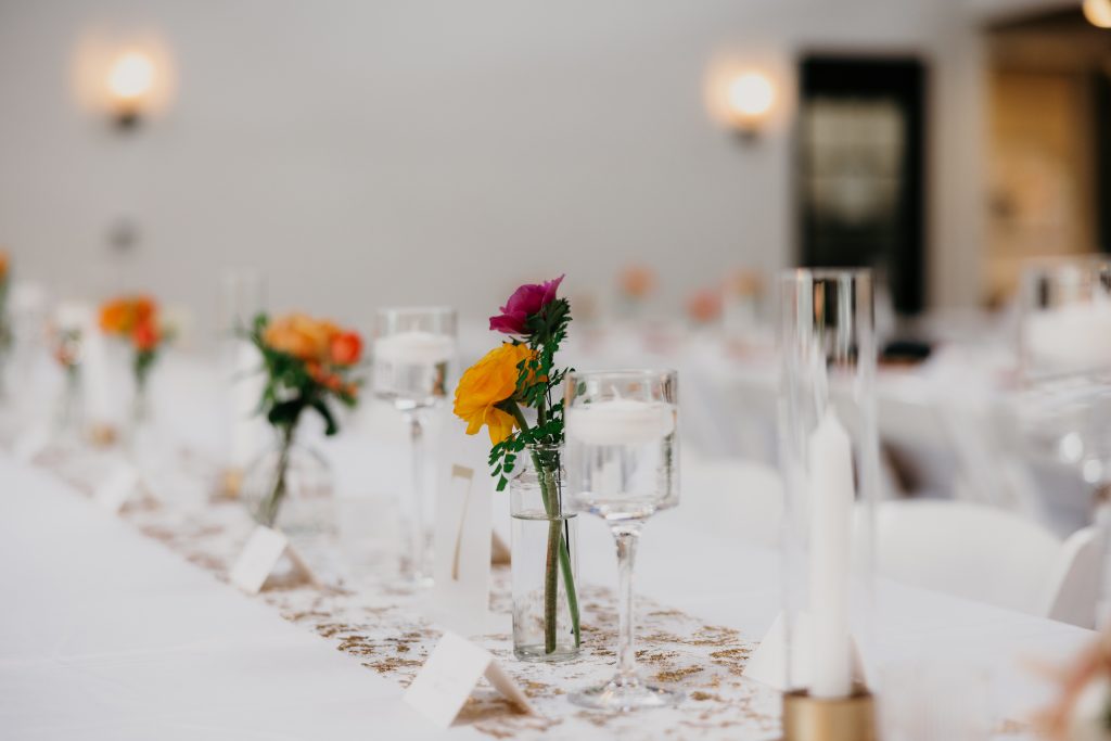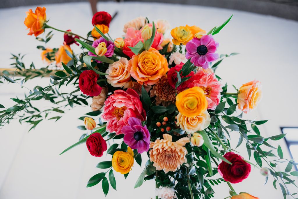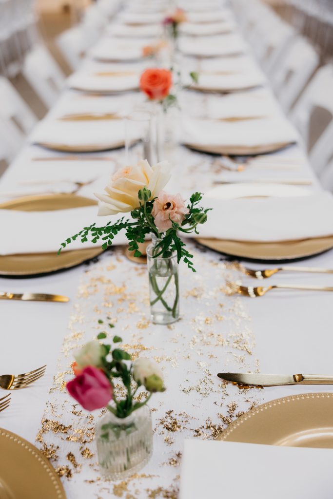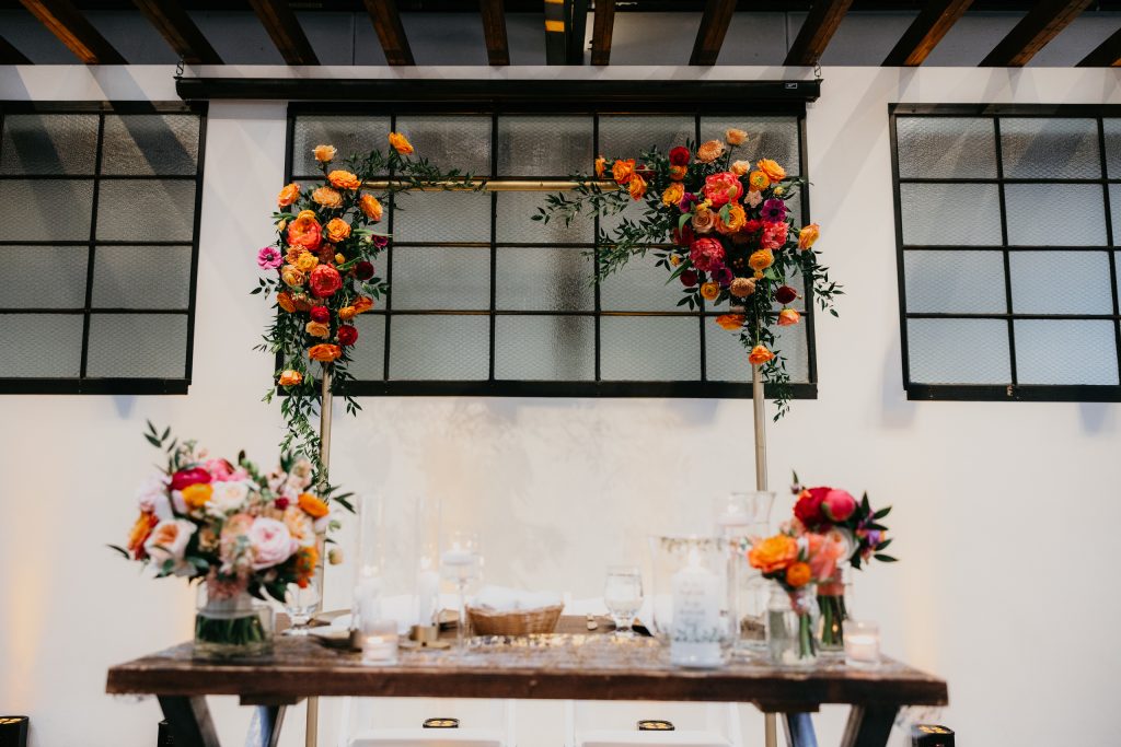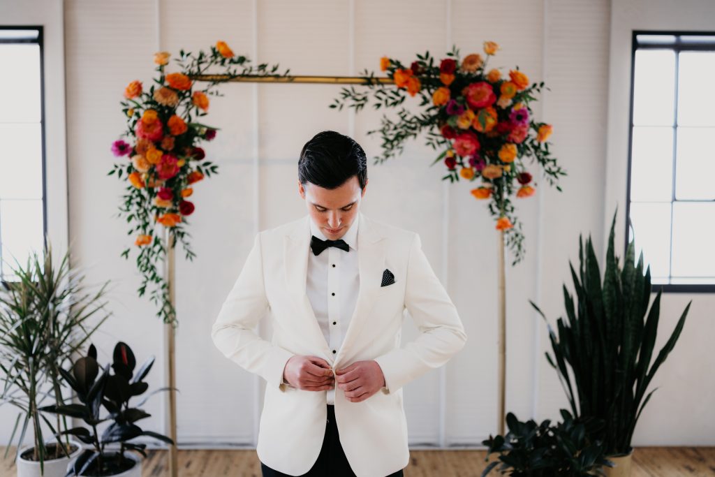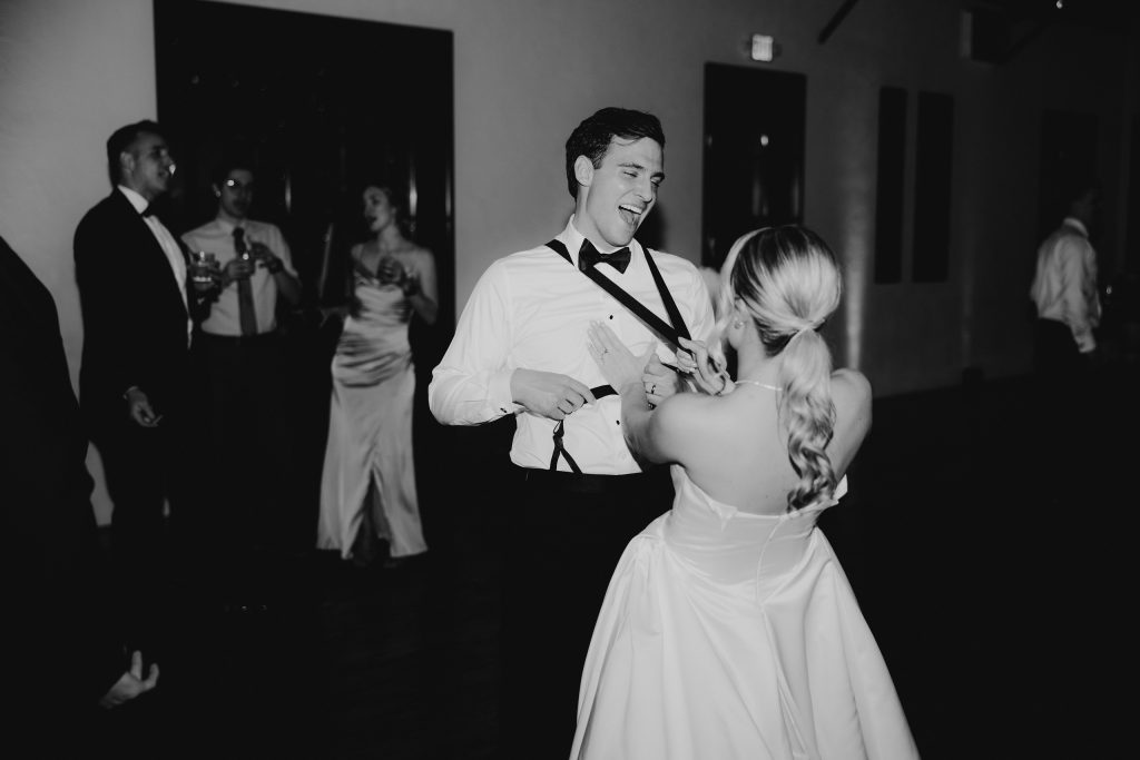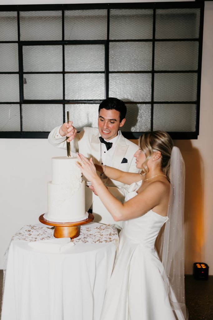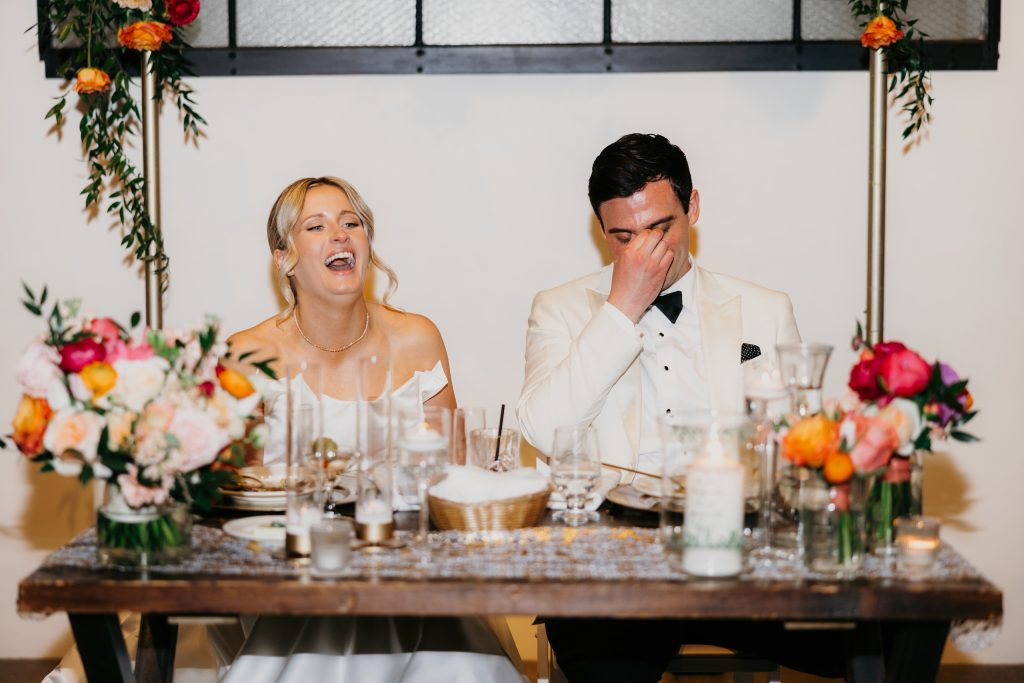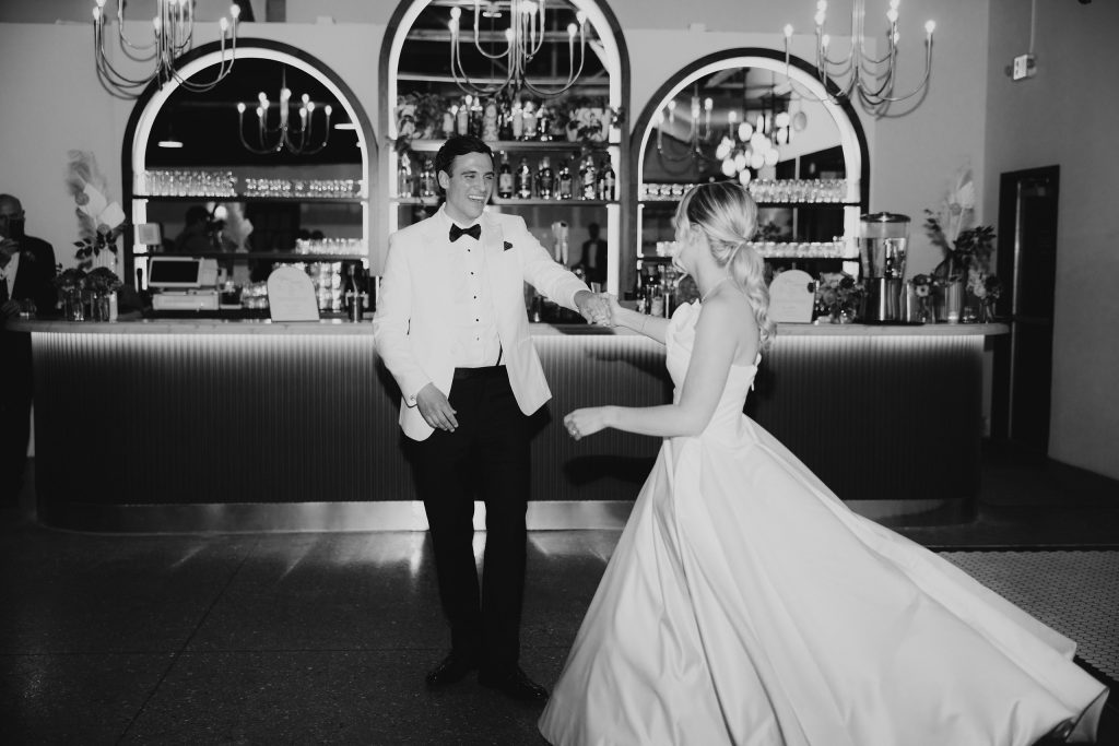 These two had perfect colors for a spring wedding and The Tinsmith was the perfect setting. The groom looked so sharp in his white tux and the neutral tones on the bridal party were complimented by bright and bold florals. Their three flower girls played the part to perfection and their adorable pup got to join for some pre-ceremony photos. The day was so special and filled with smiles and class.