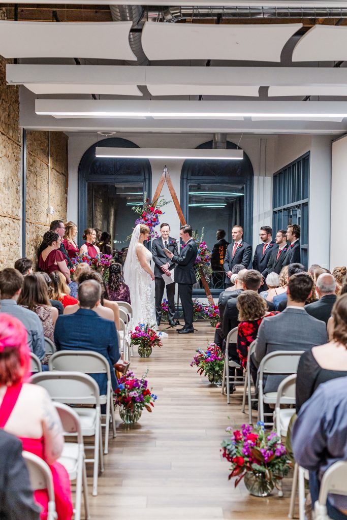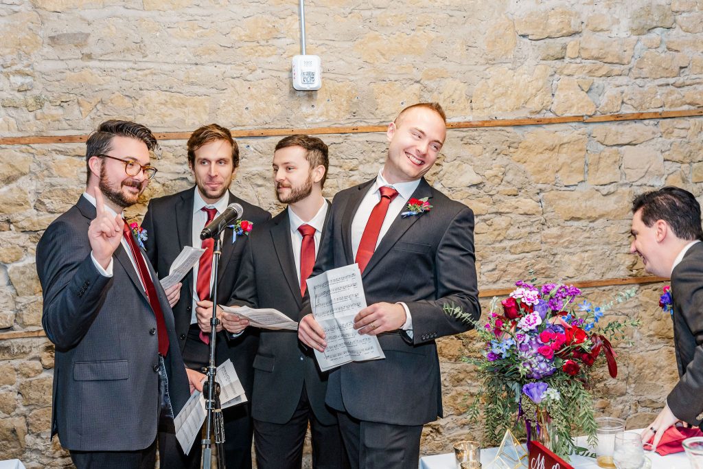 This wedding had some truly stand out points for me. Probably the most impressive was the groomsmen’s “speech.” A quartet of self-proclaimed music nerds made up Jackson’s half of the wedding party and instead of a traditional Best Man speech, the four of them got together and composed a shanty ballad, music and lyrics, and sang it a capella with full harmonies, at the dinner reception. It was really incredible. Jackson and Seyenna had no idea they had put this together and it was one of the most awesome wedding surprises I’ve ever heard. Combine this with some gorgeous flowers, a unique downtown venue, a slightly spicy dance floor, and some of the biggest smiles I’ve ever seen on the bride and groom’s faces, this was really a night to remember!